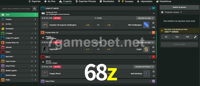 A aposta 68z oferece aos jogadores a experiência mais conveniente de apostas em eSports!